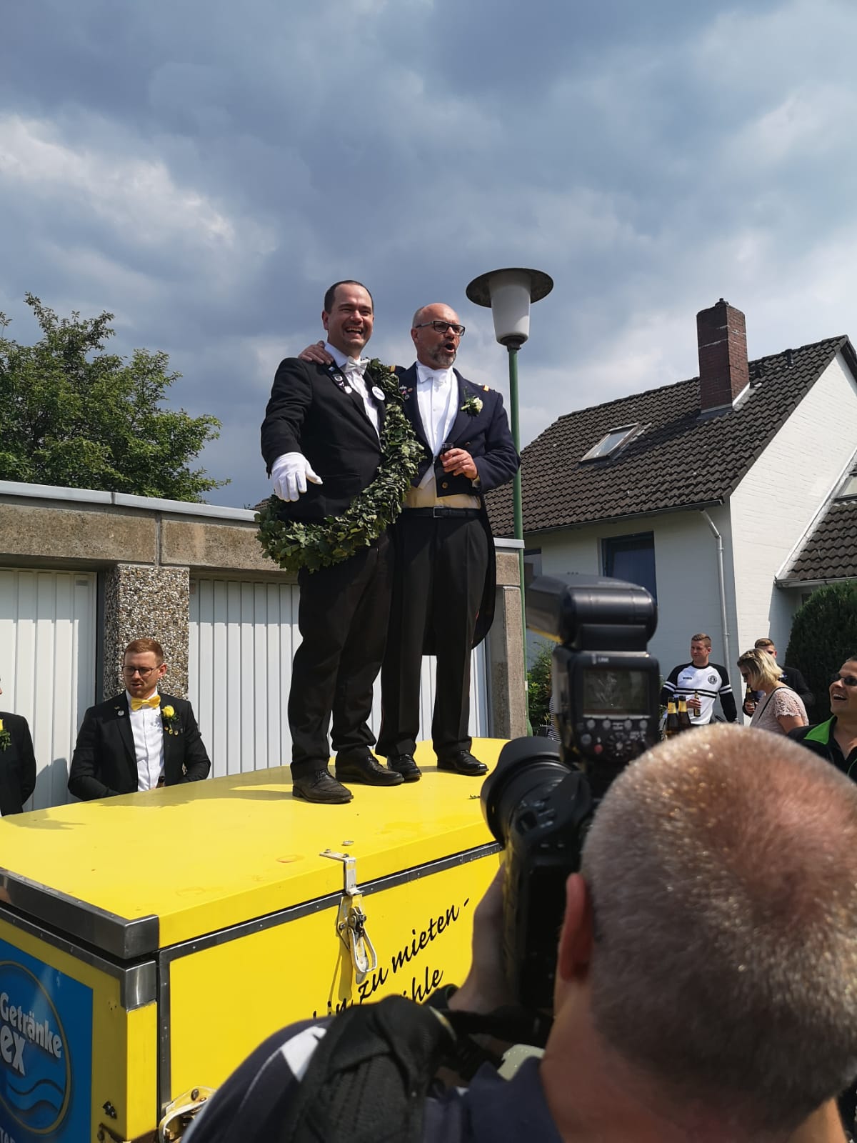 Sicher hättet ihr euch genauso gerne wie wir nach eine langen Nach von Freitag auf Samstag auf den Weg zum Hauptmann gemacht. Was gibt es schöneres als morgens früh einen Kaffee, ein belegtes Brötchen und ein kühles Bier im Ambiente der Leutnantswiese zusammen mit seinen Freunden der Ersten Kompanie zu genießen. Wir hoffen sehr dies nächstes Jahr wieder mit euch zu wiederholen. Hier ein paar Bilder zum Einstimmen: